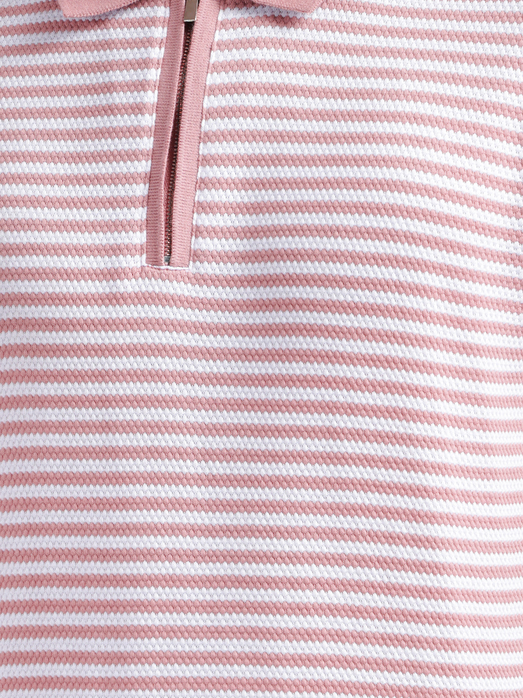 COBB PINK STRIPED POLO NECK ZIPPER T-SHIRT
