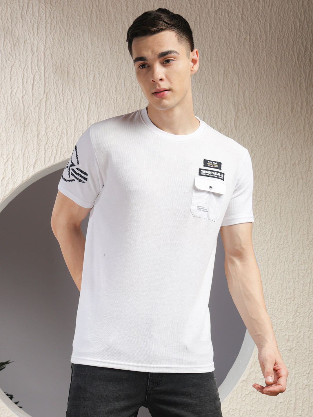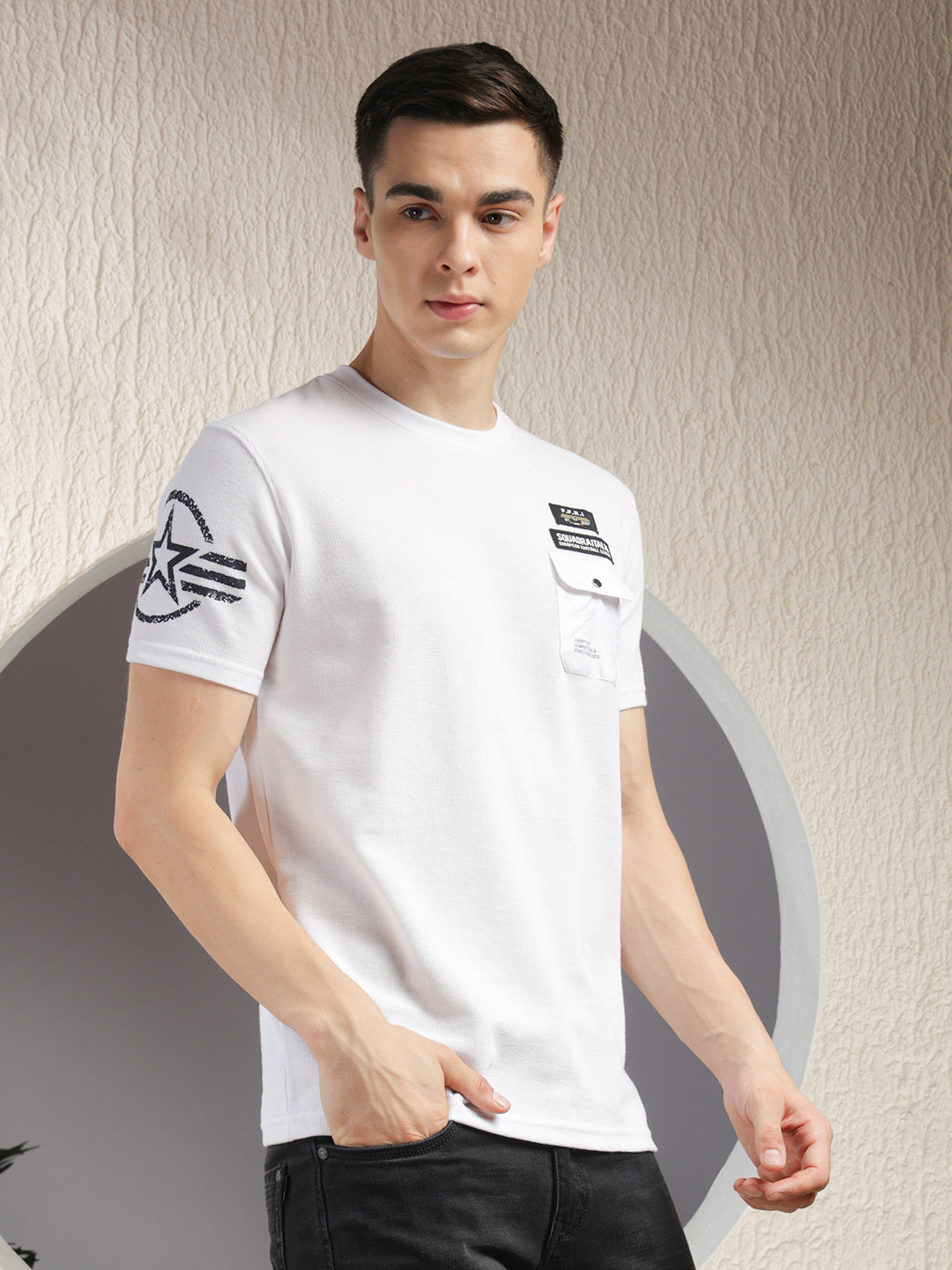 COBB WHITE PRINTED ROUND NECK T-SHIRT
