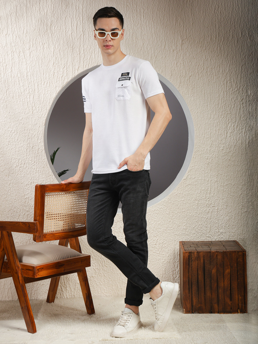 Crafted from soft cotton-blend fabric, this tee features a stylish front print, classic round neckline, and short sleeves, making it perfect for casual, everyday wear.