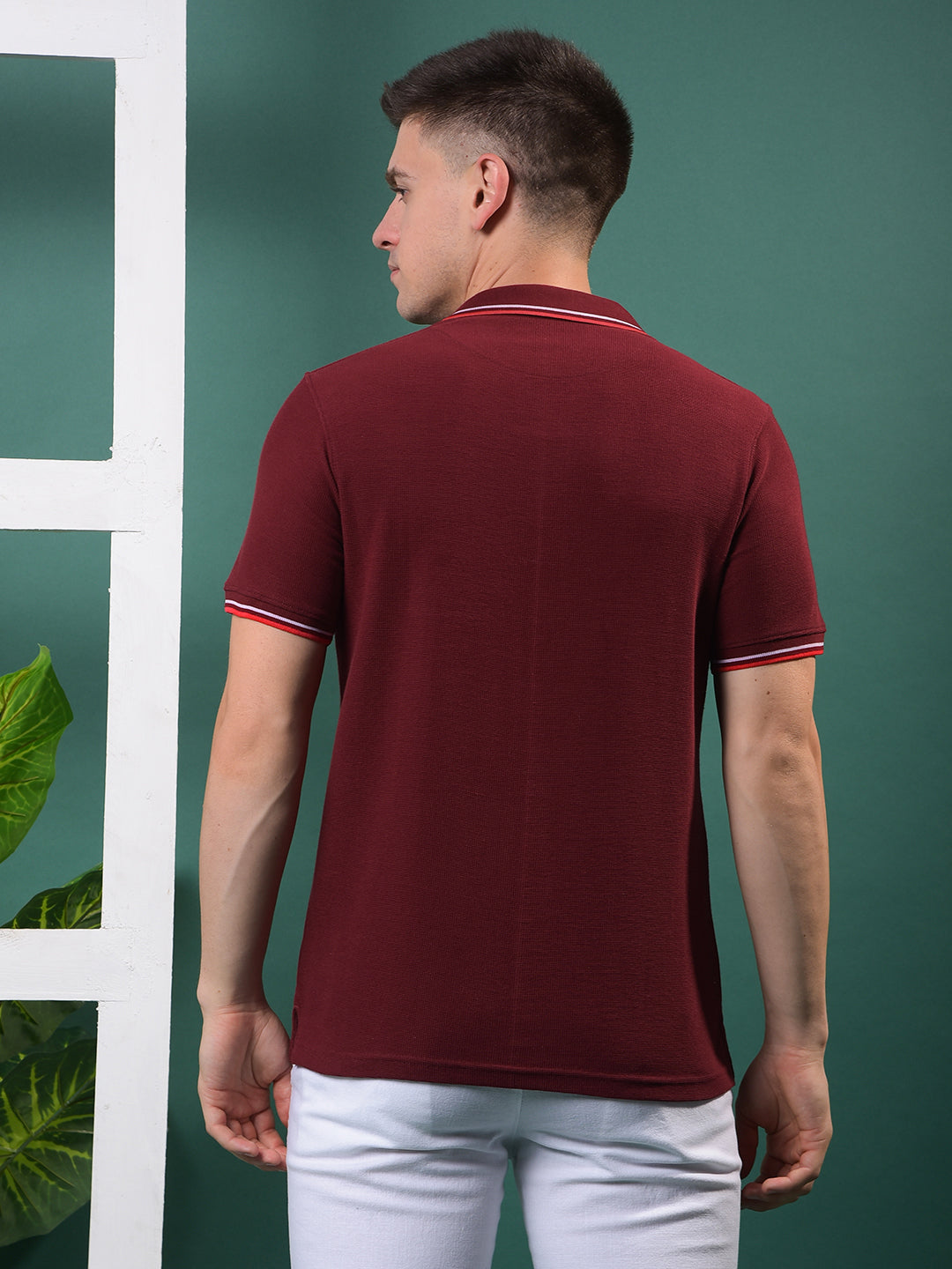 COBB SOLID MAROON POLO NECK T-SHIRT