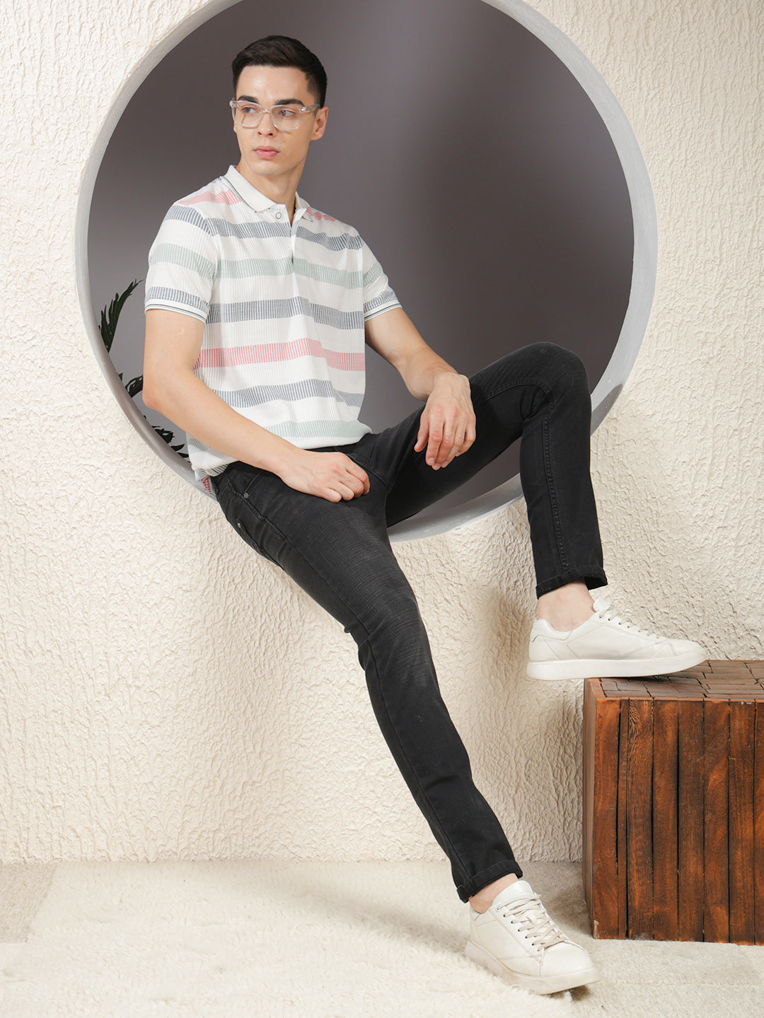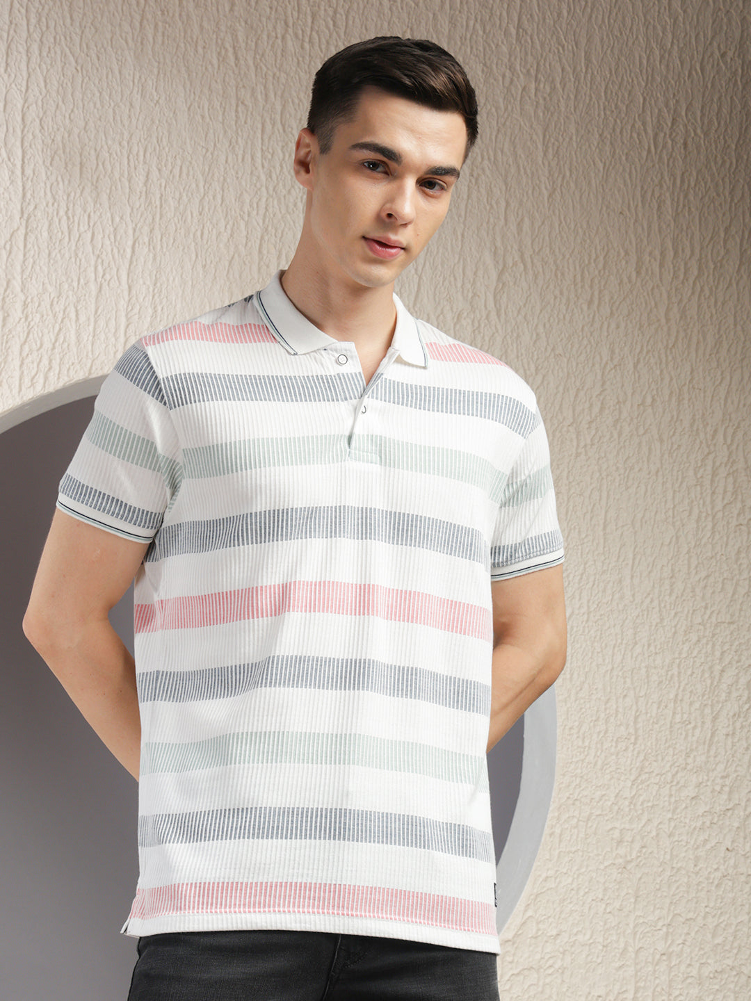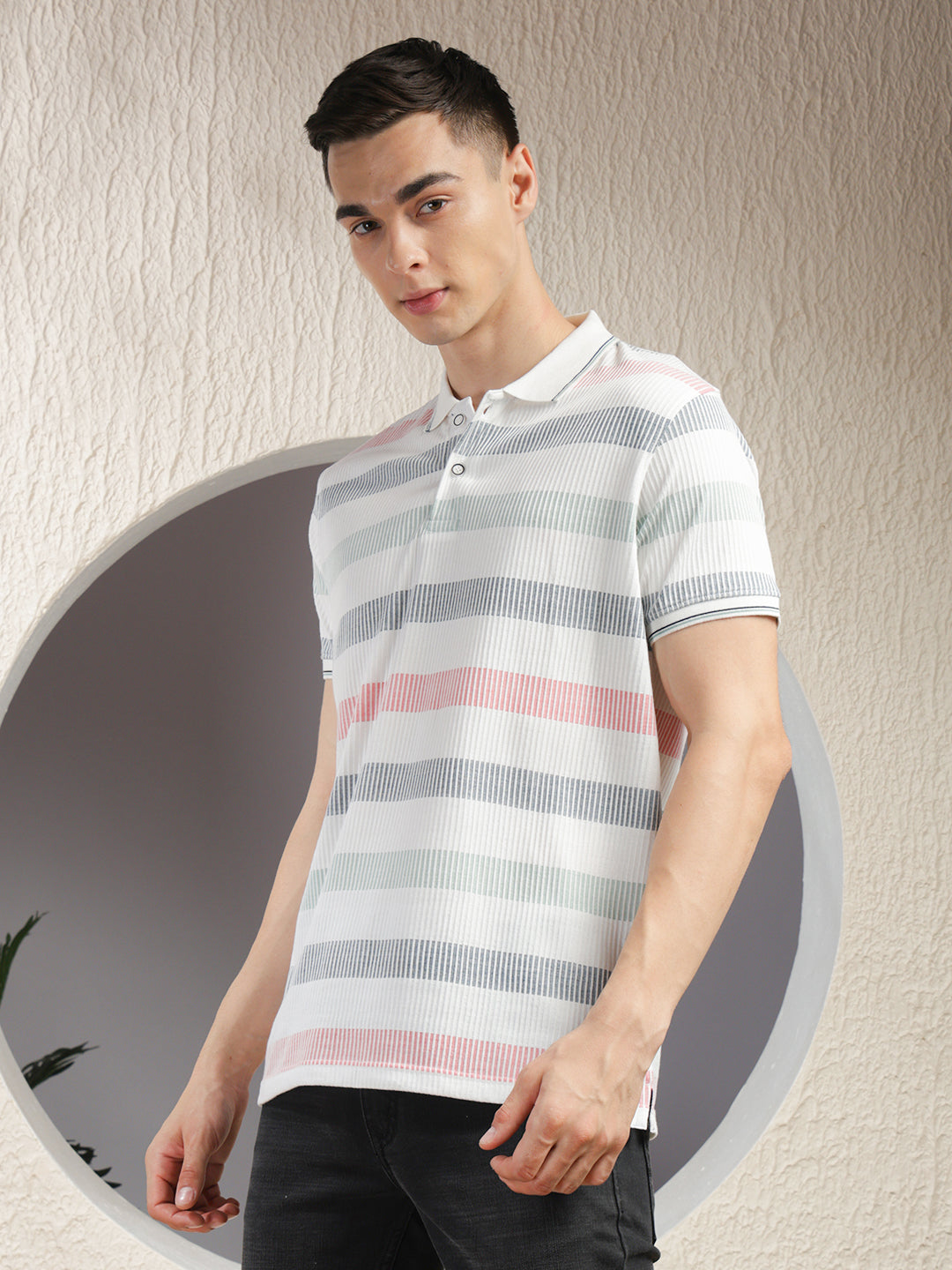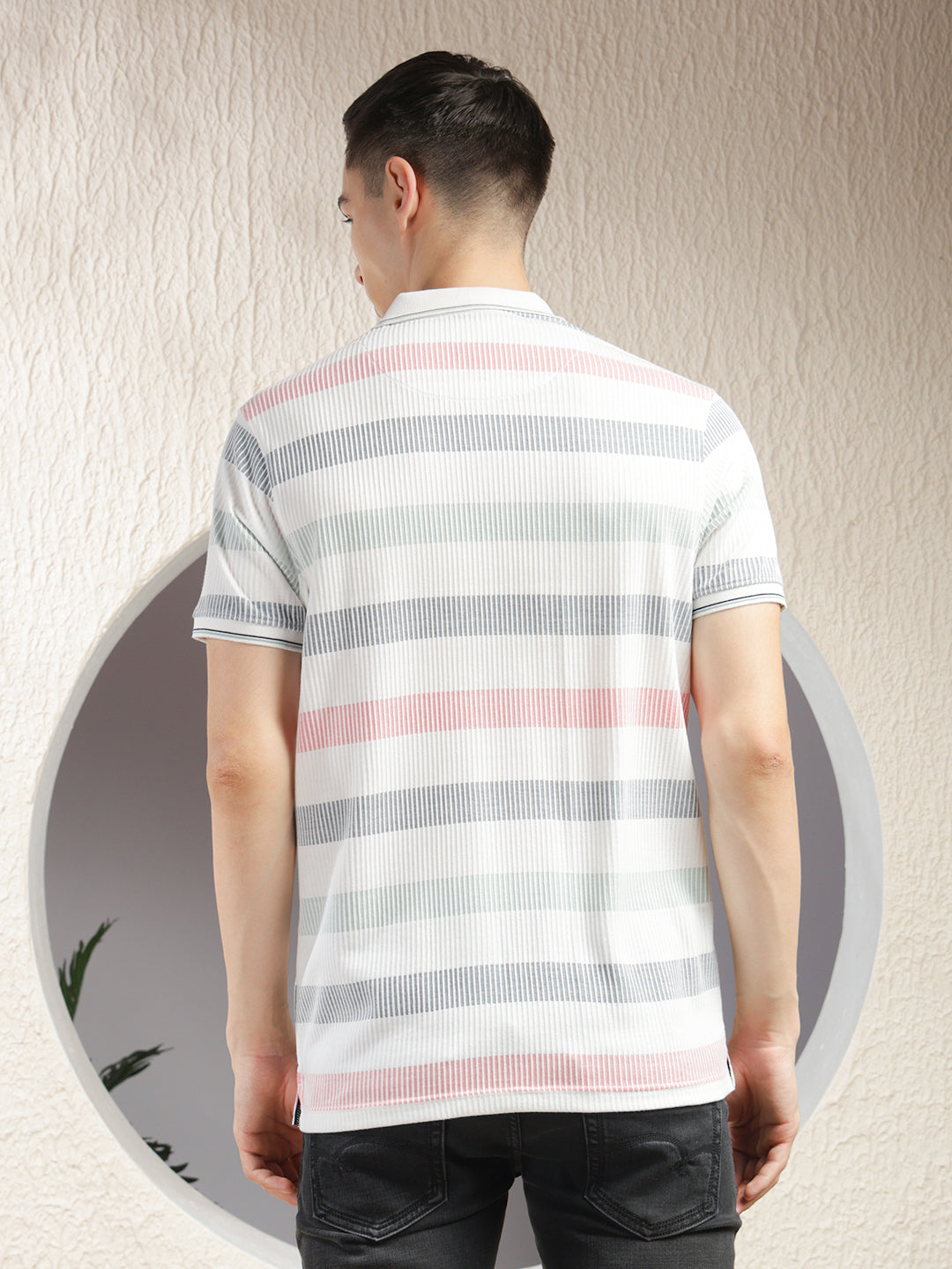 COBB White Striped Polo Neck T-Shirt – crafted from premium breathable fabric with a classic polo collar and stylish stripe pattern. Perfect for casual wear, offering comfort, durability, and a timeless versatile look.