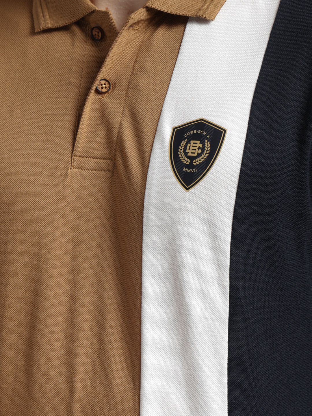 COBB TAN COLOR-BLOCK POLO NECK T-SHIRT