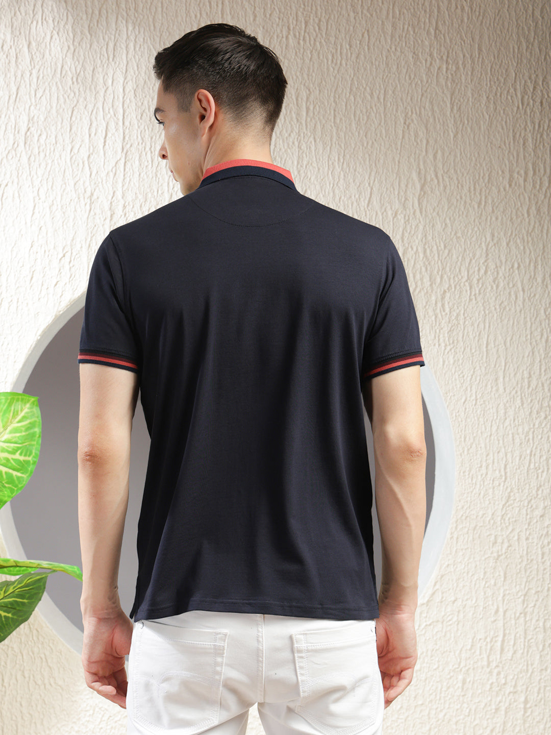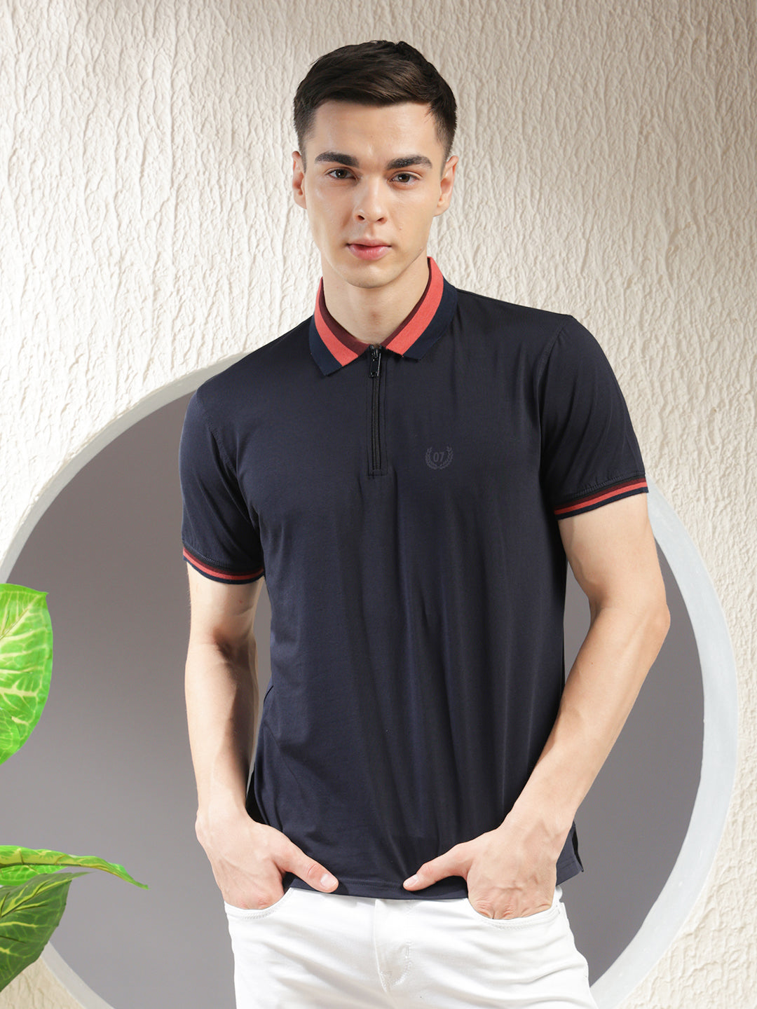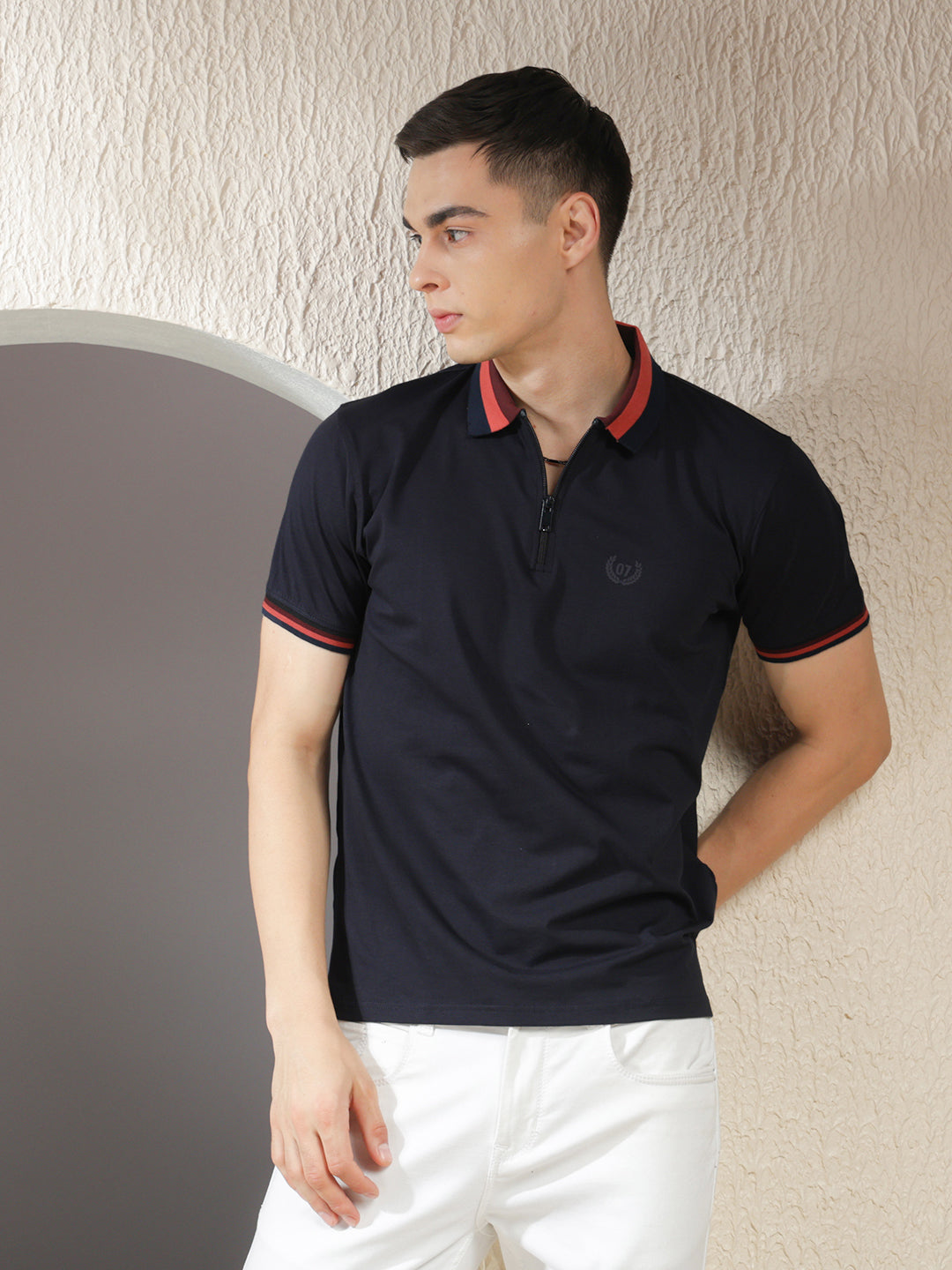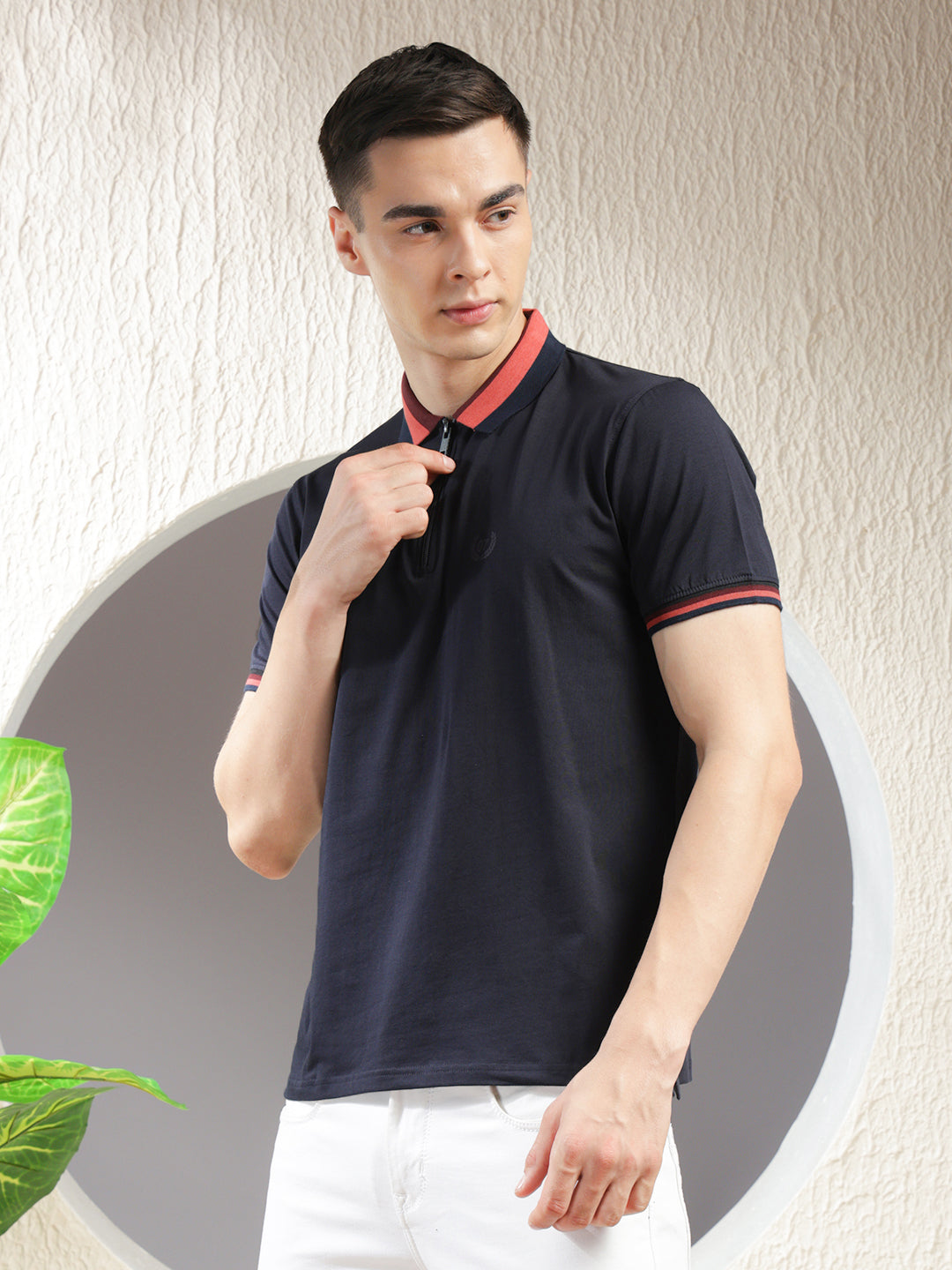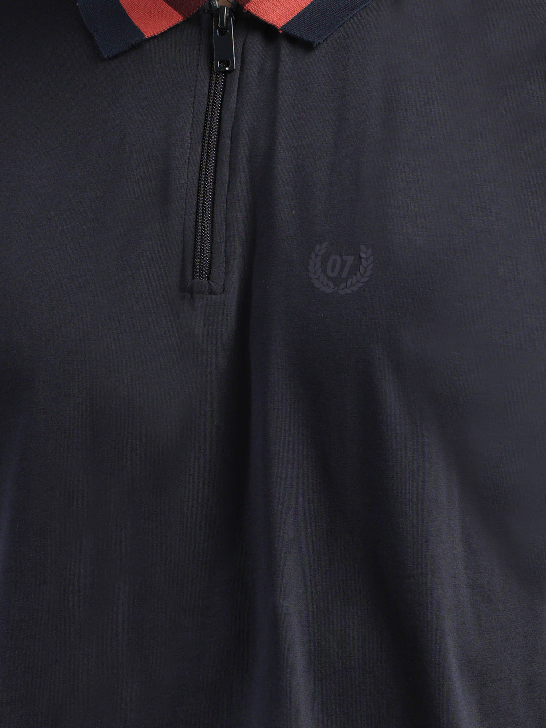 COBB SOLID NAVY BLUE POLO NECK ZIPPER T-SHIRT
