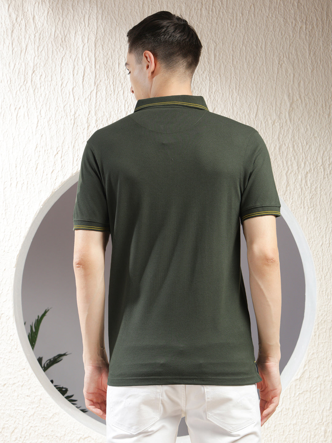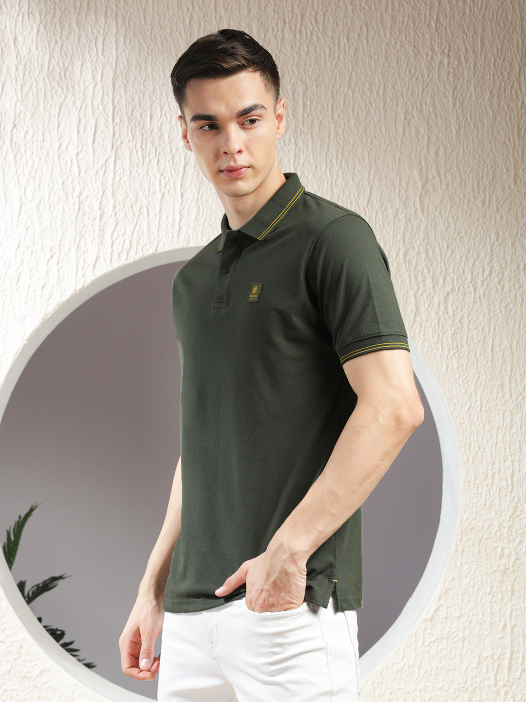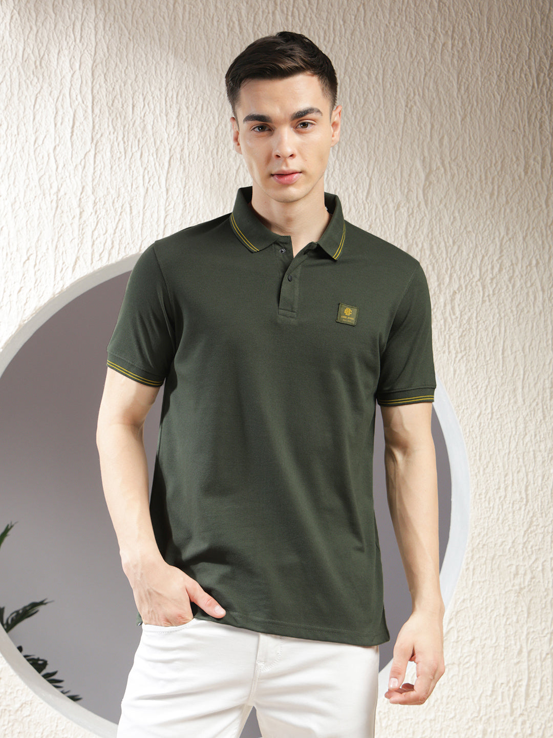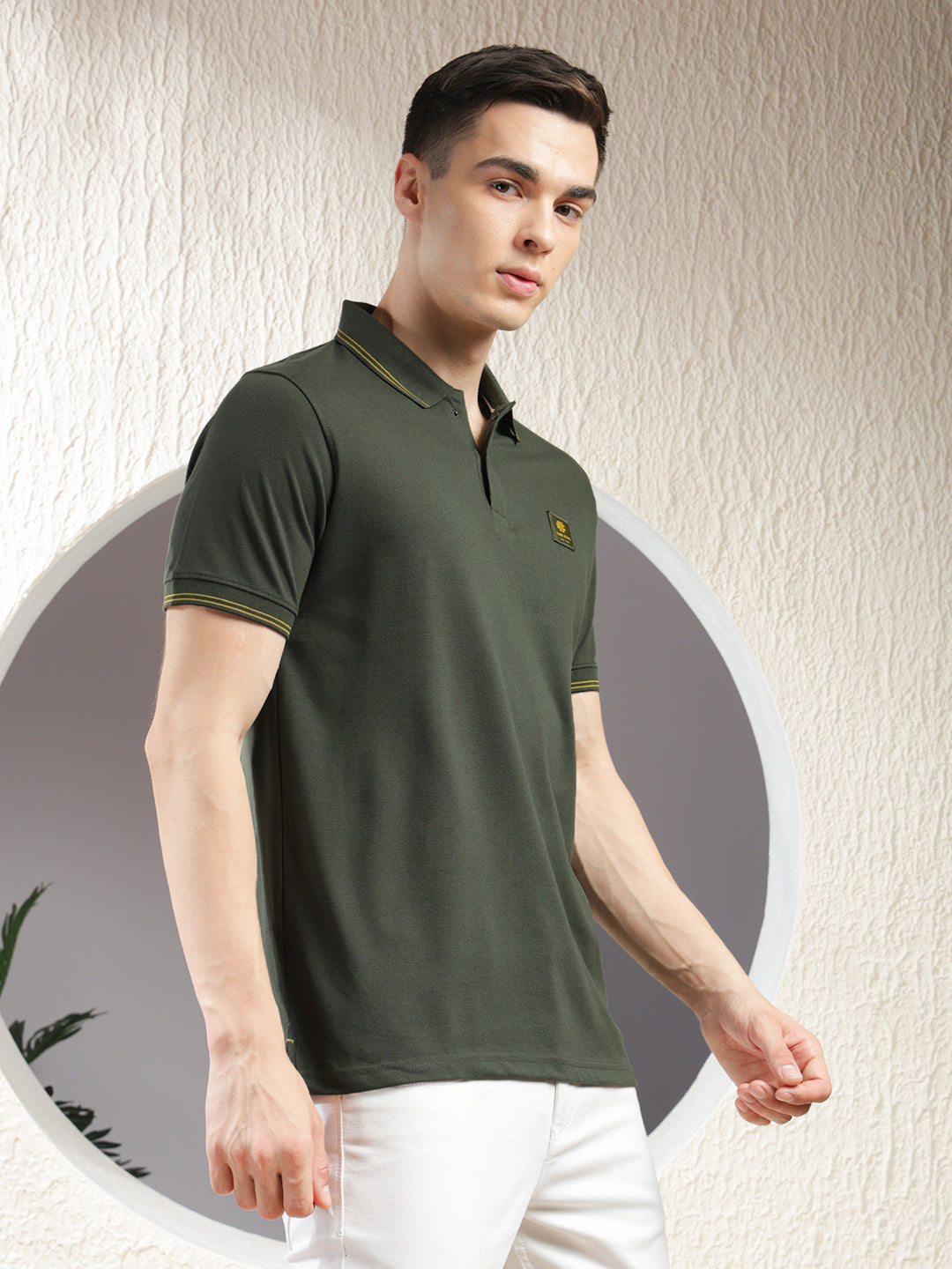 COBB SOLID OLIVE POLO NECK T-SHIRT