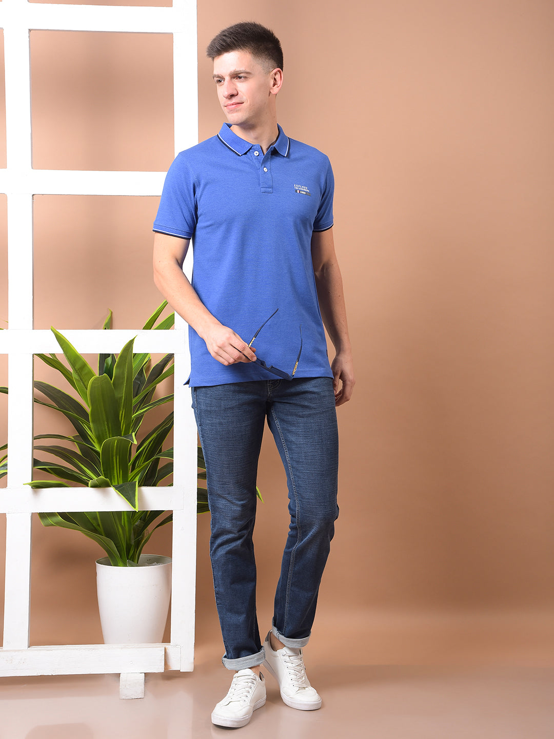 Deep tones, clean design ‰ÛÓ Cobb‰۪s Solid Indigo Polo Neck T-Shirt brings effortless sophistication to your everyday smart-casual wardrobe.