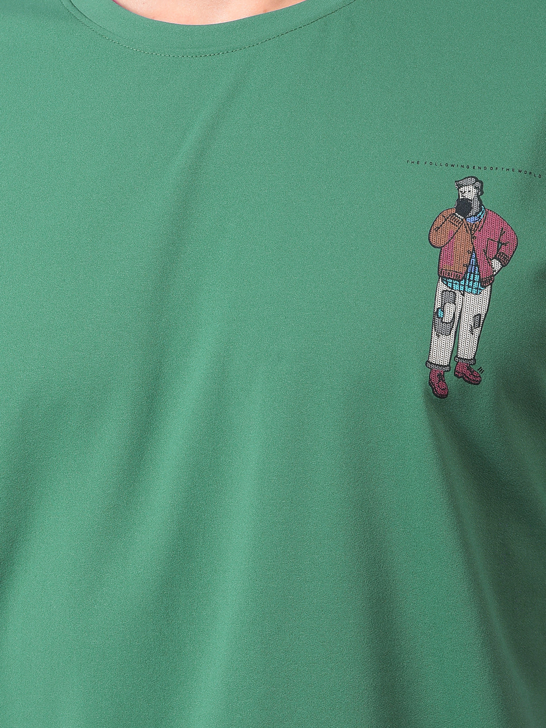 COBB GREEN PRINTED ROUND NECK OVERSIZED T-SHIRT