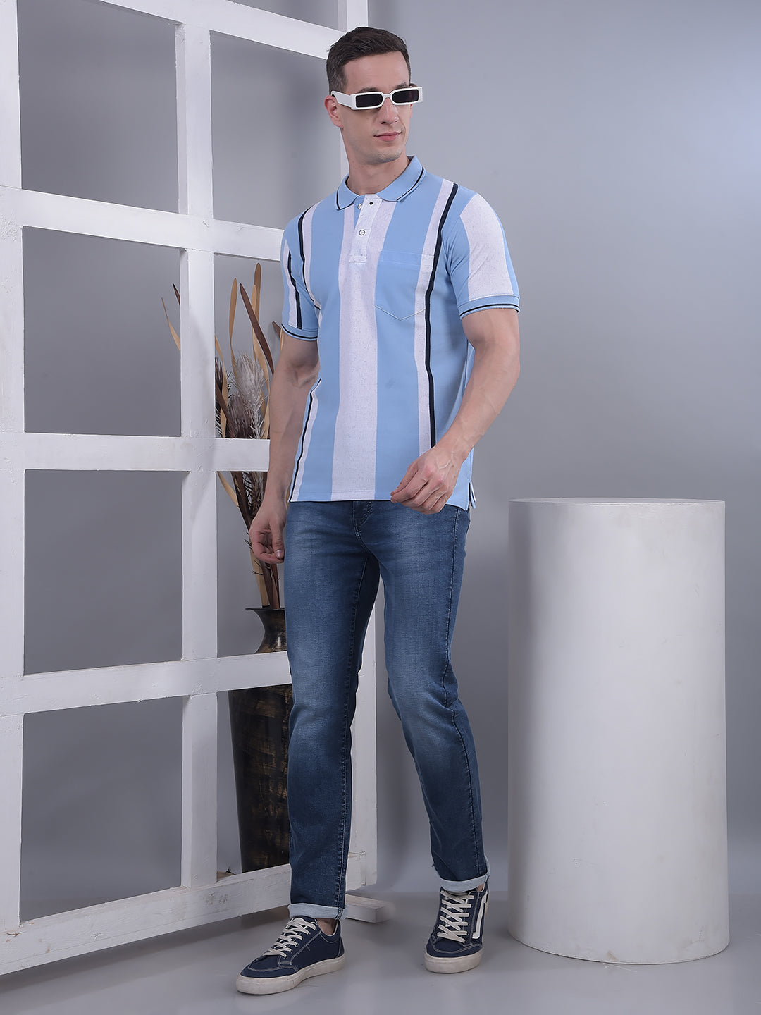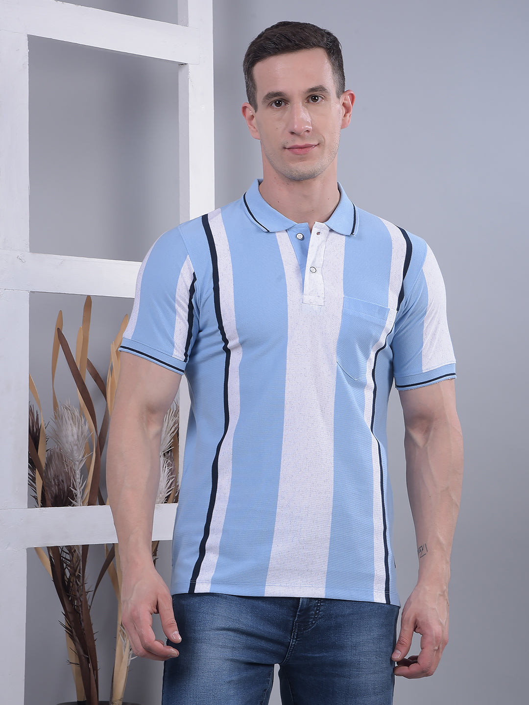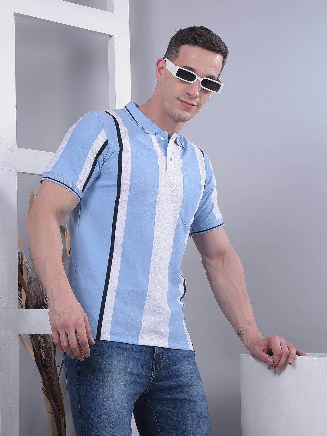 Breeze through the day in style with Cobb's Sky Blue Striped Polo Neck T-Shirt ‰ÛÓ a fresh take on classic stripes and everyday comfort.
