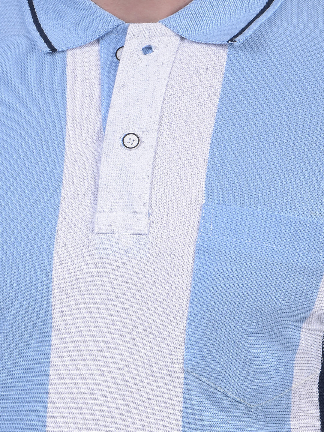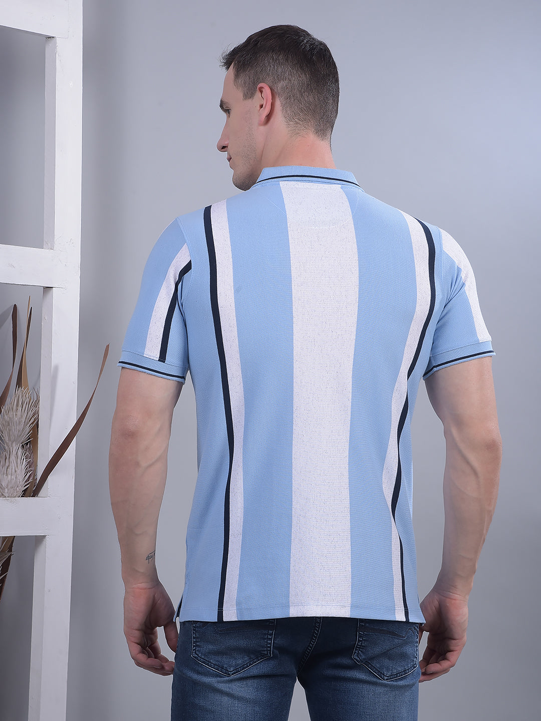 COBB SKY BLUE STRIPED POLO NECK T-SHIRT
