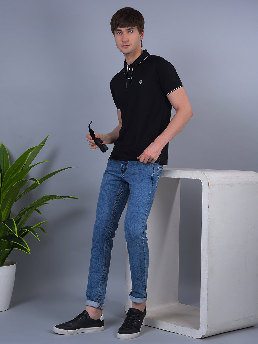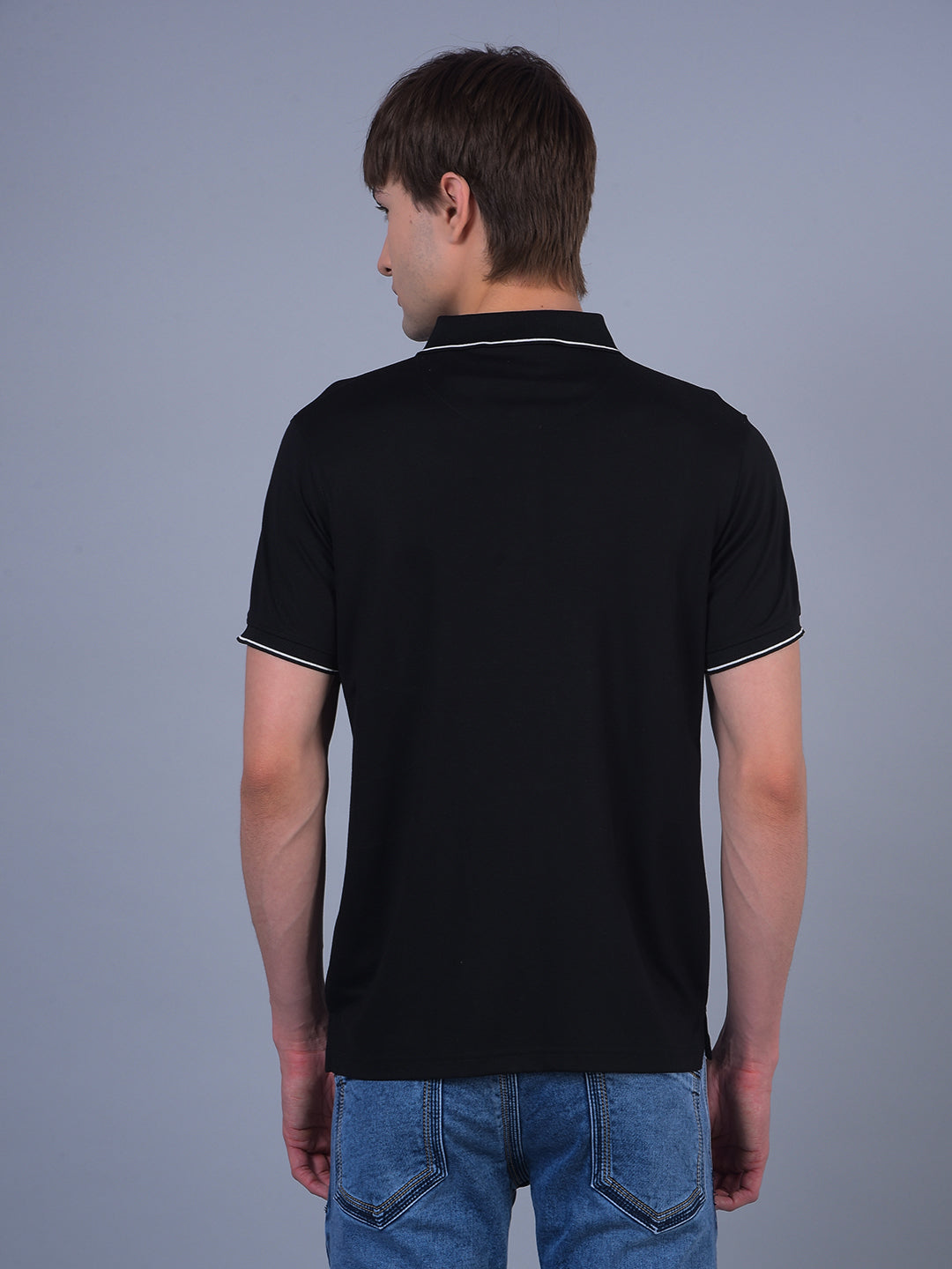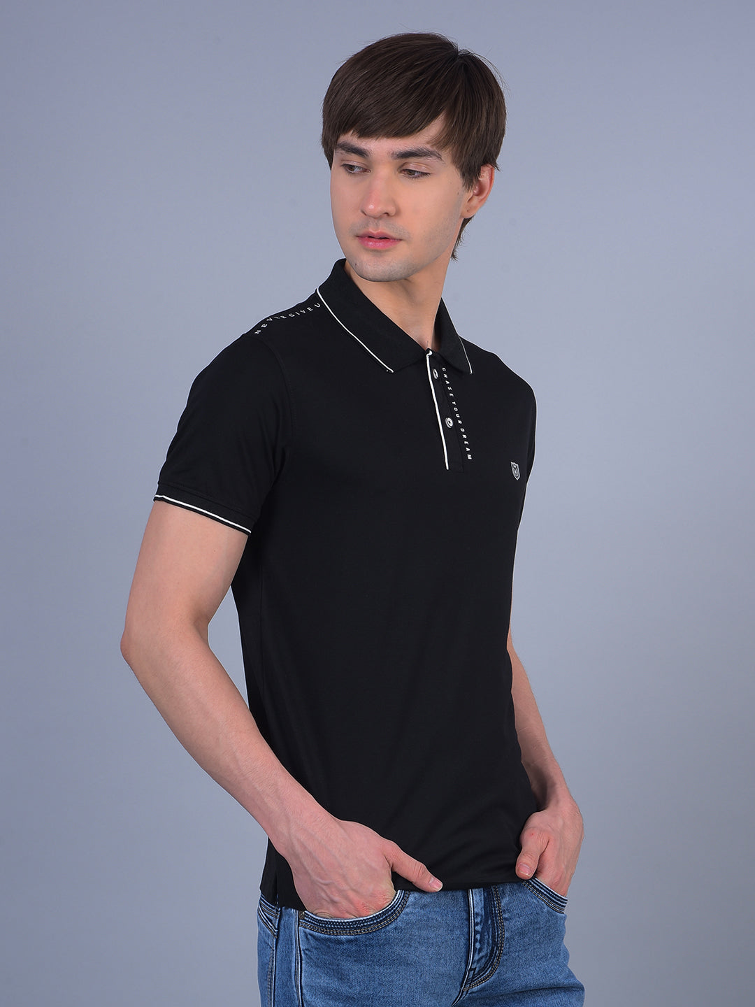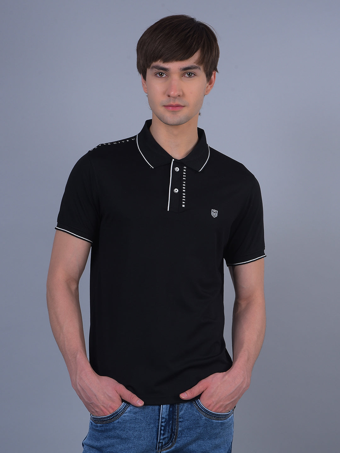 COBB Black Printed Polo Neck T-Shirt offers a sleek look with eye-catching prints, polo collar design, and breathable cotton fabric—ideal for smart-casual and everyday wear.