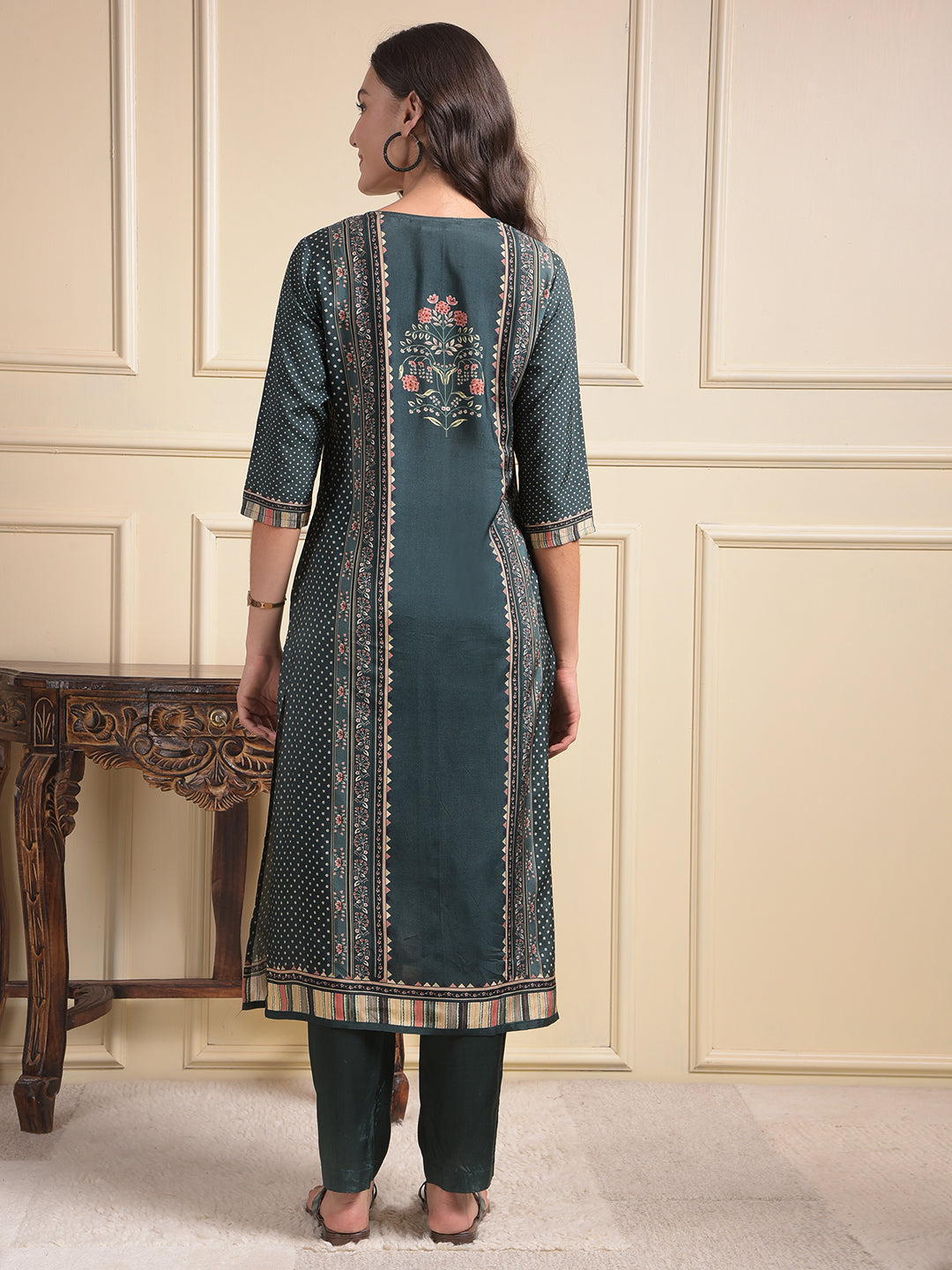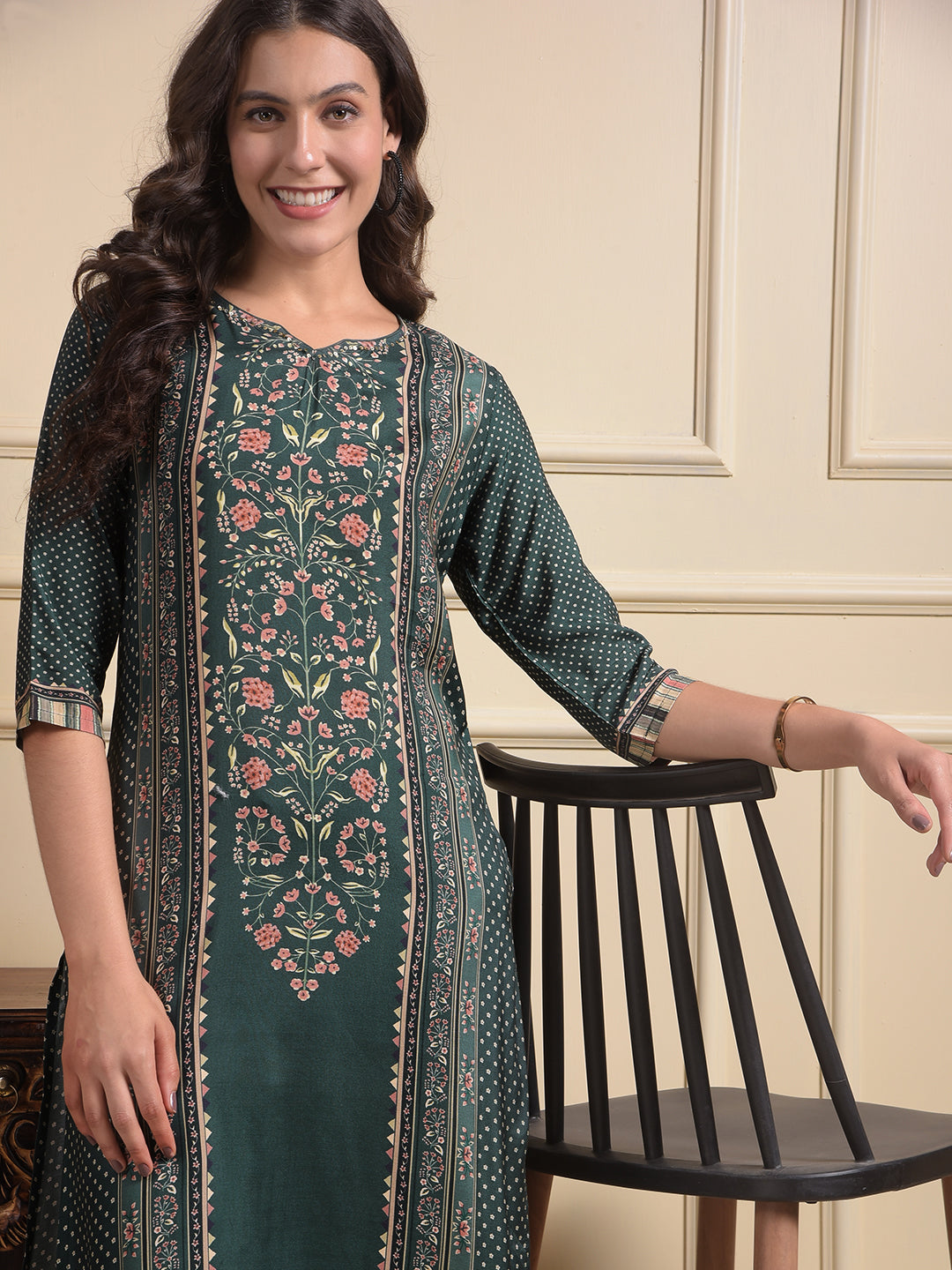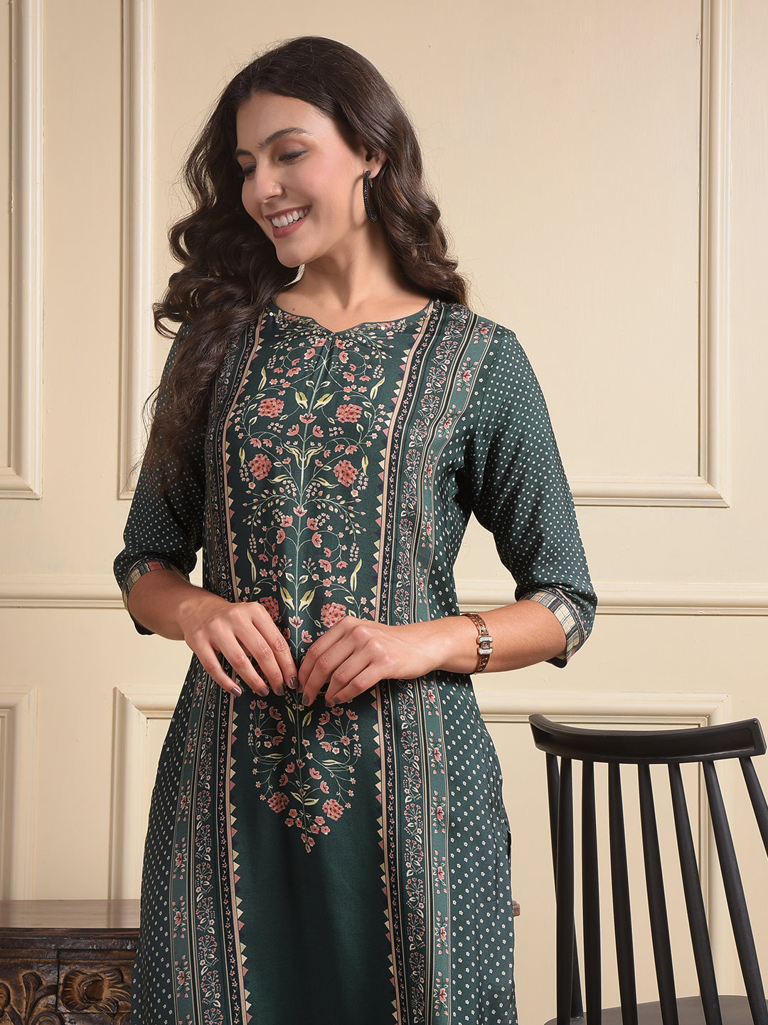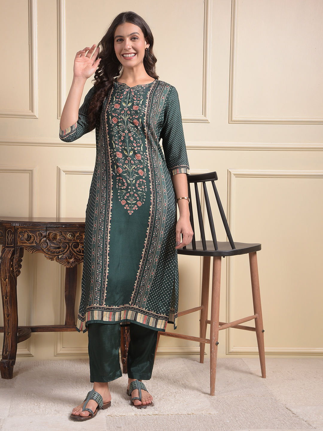 MISS FOREVER BOTTLE GREEN KURTI WITH PLAZO