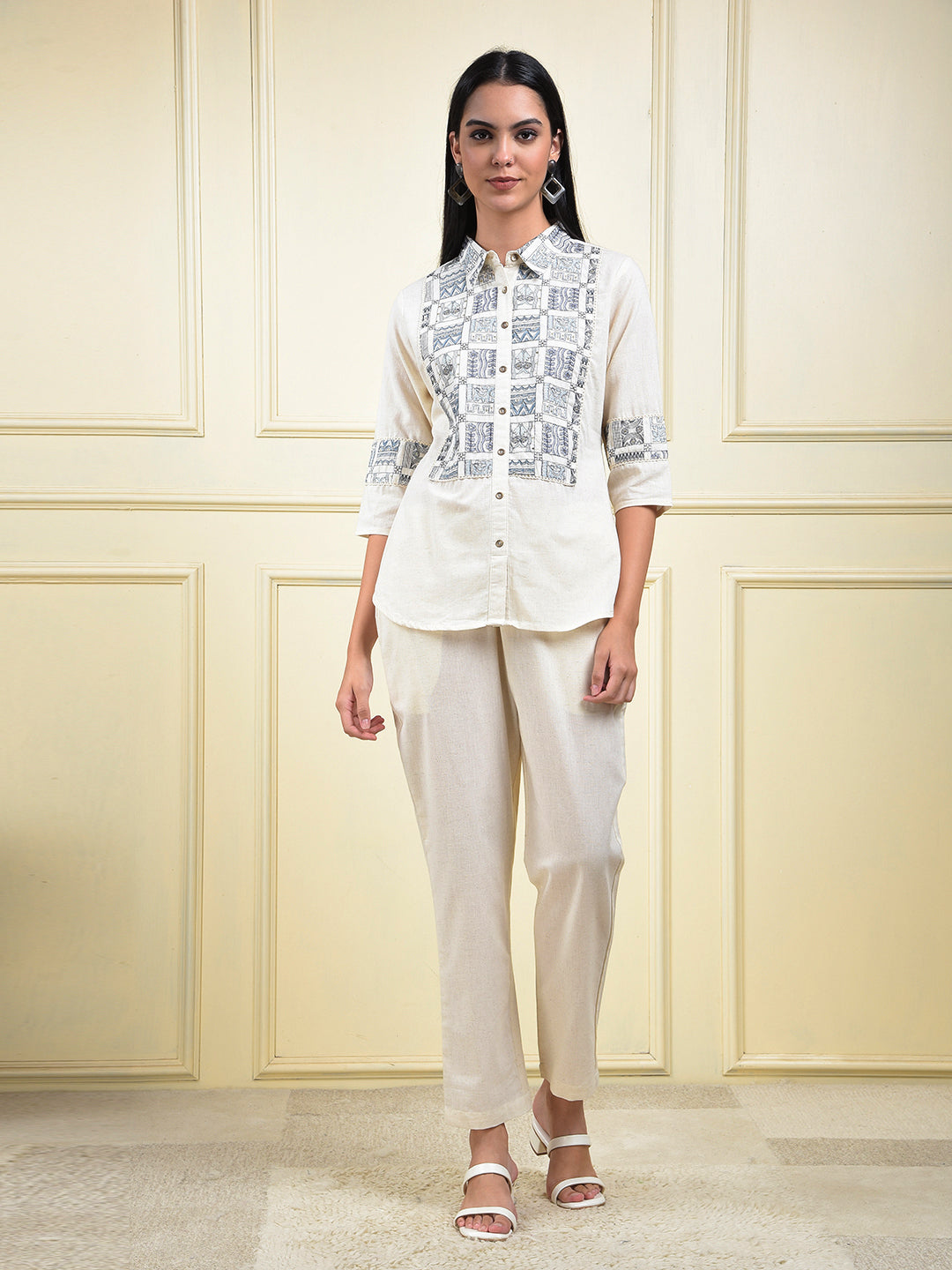 MISS FOREVER Cream Co-ord Set – a stylish two-piece outfit featuring a soft cream top and matching bottoms, designed for comfort, elegance, and effortless casual or semi-formal wear.