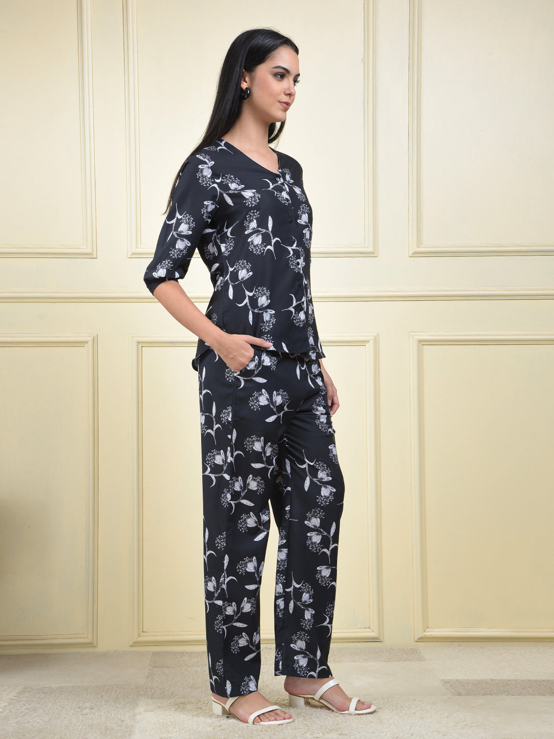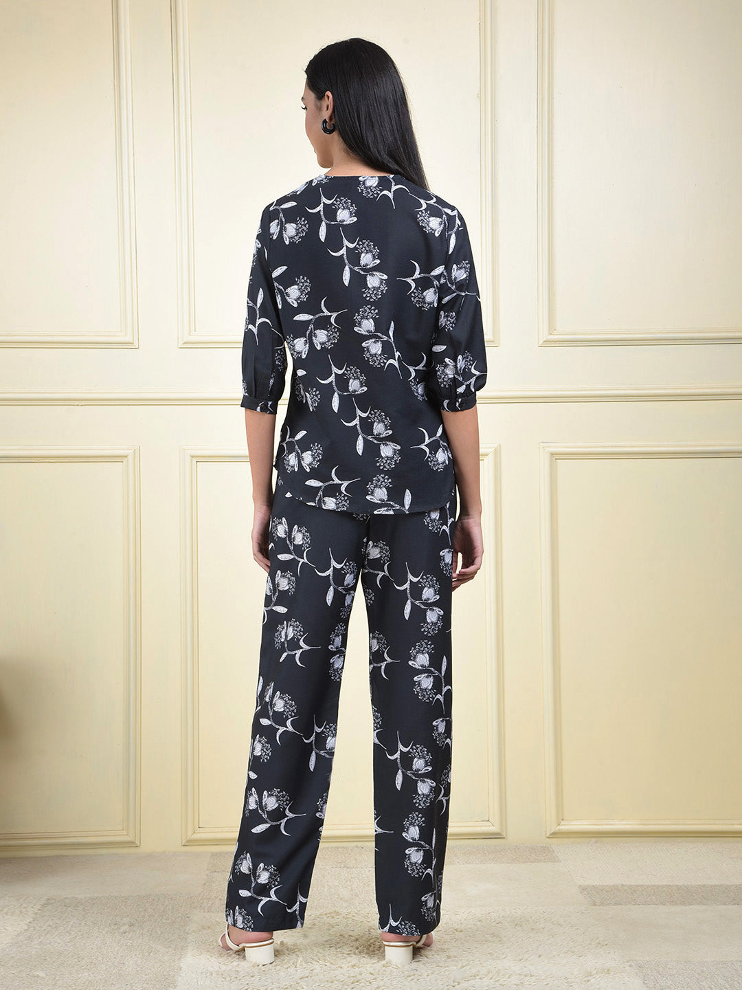 MISS FOREVER Black Co-ord Set – a sleek and stylish two-piece outfit with a black top and matching bottoms, offering a comfortable fit and versatile look perfect for casual or semi-formal occasions.