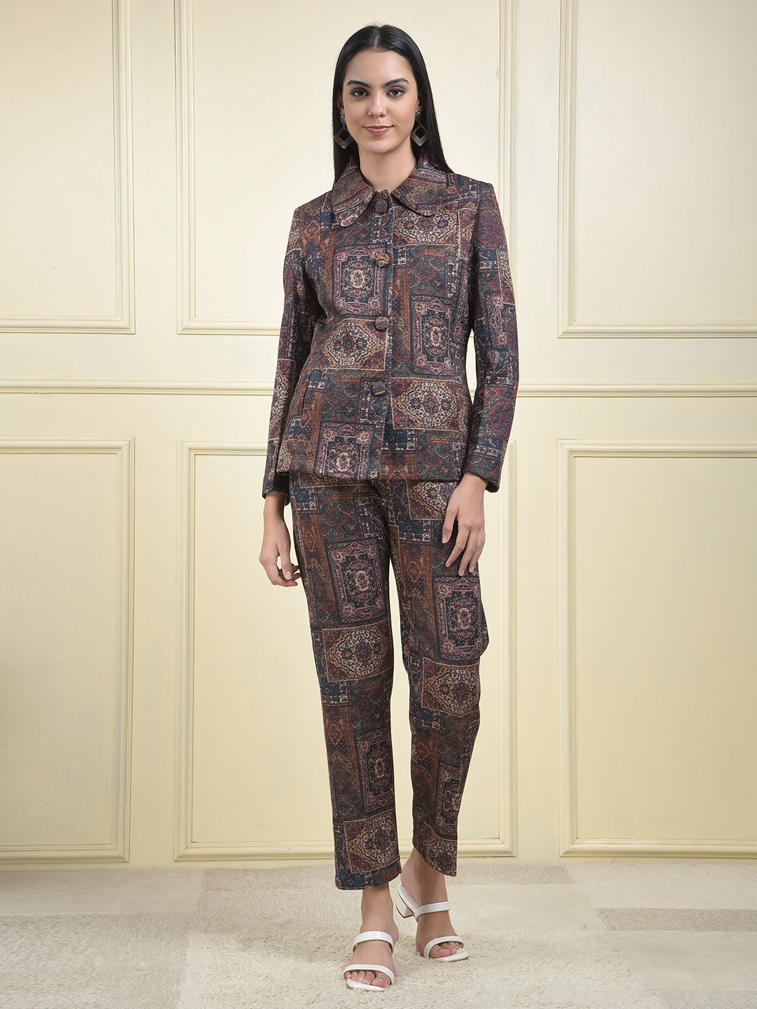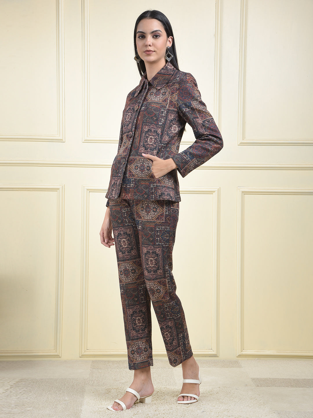 MISS FOREVER BROWN PRINTED WINTER CO-ORD SET