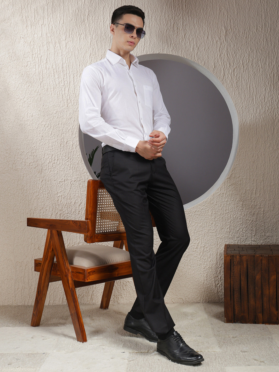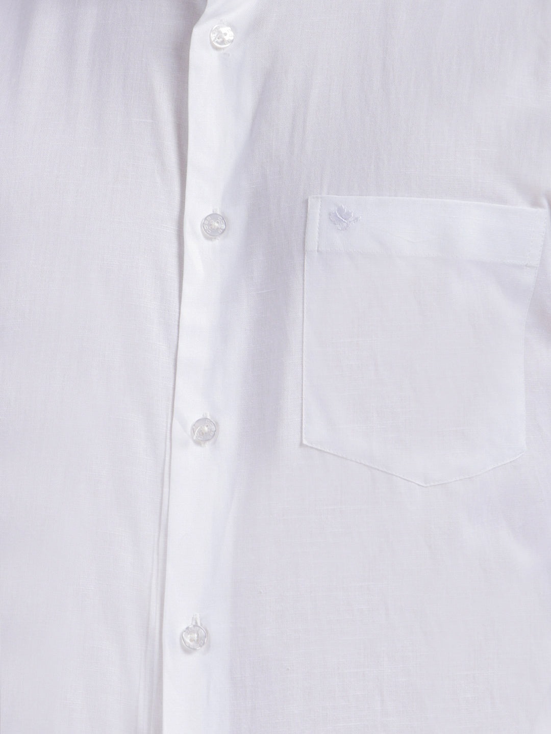Experience refined elegance with Cobb's Solid White Smart-Fit Formal Shirt — where breathable comfort meets timeless sophistication.