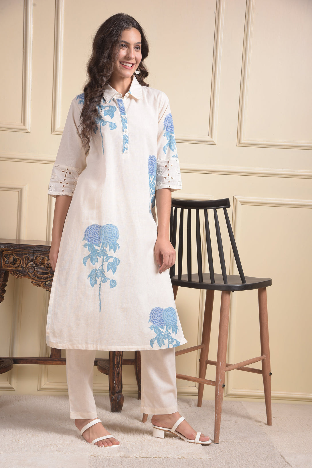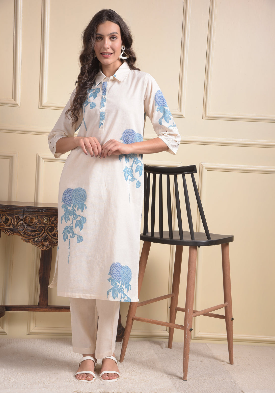 MISS FOREVER Cream Kurti with Plazo – a graceful ethnic ensemble featuring a soft cream kurti paired with matching plazo pants. Designed for comfort and elegance, perfect for festive occasions, casual outings, or traditional gatherings.